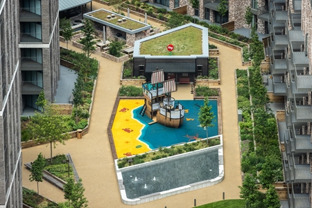 Wembley Park's flagship residential development, Canada Gardens, forms the first of three developments within the site's Eastern Lands. Completed in summer 2020 and designed for families, Canada Gardens comprises 743 homes, 303 of which as Discount Market Rent, situated around over an acre of podium garden containing a club house, allotments, BBQs, a sand pit and a pirate ship.
